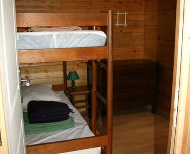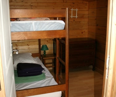 - au rez-de-chaussée une petite chambre avec 2 lits simples superposés (possibilité d'ajouter un lit bébé ou adulte en appoint)