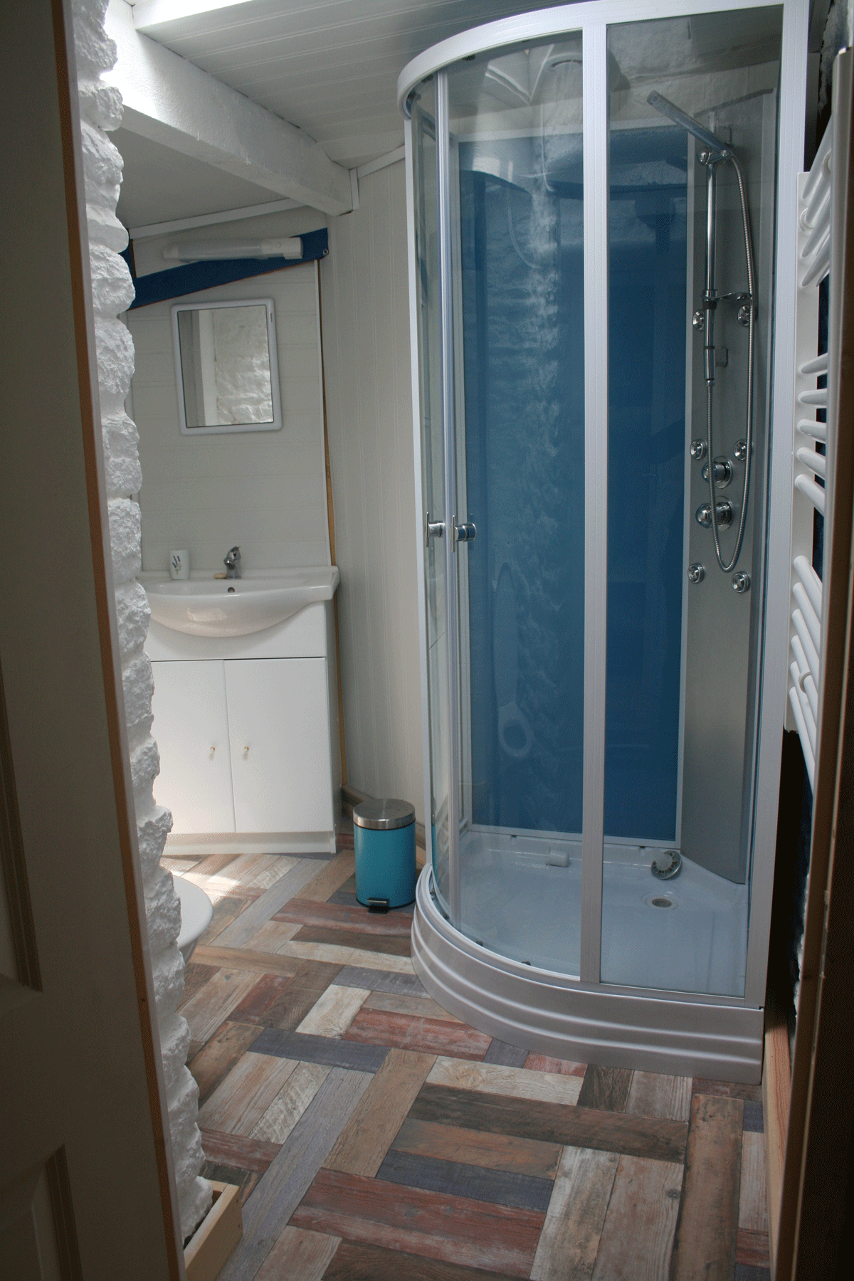 - une salle d'eau avec douche, lavabo et WC.